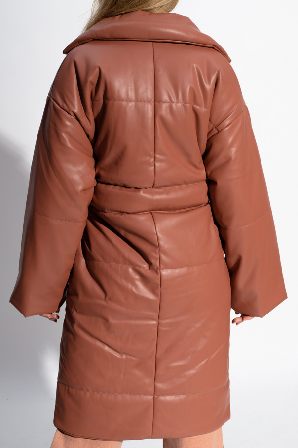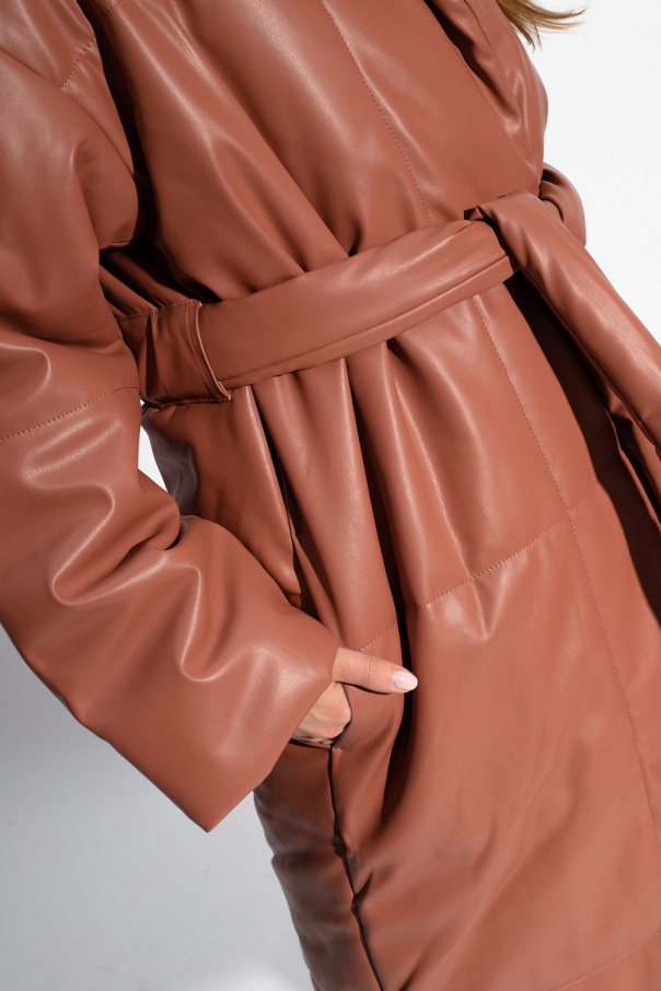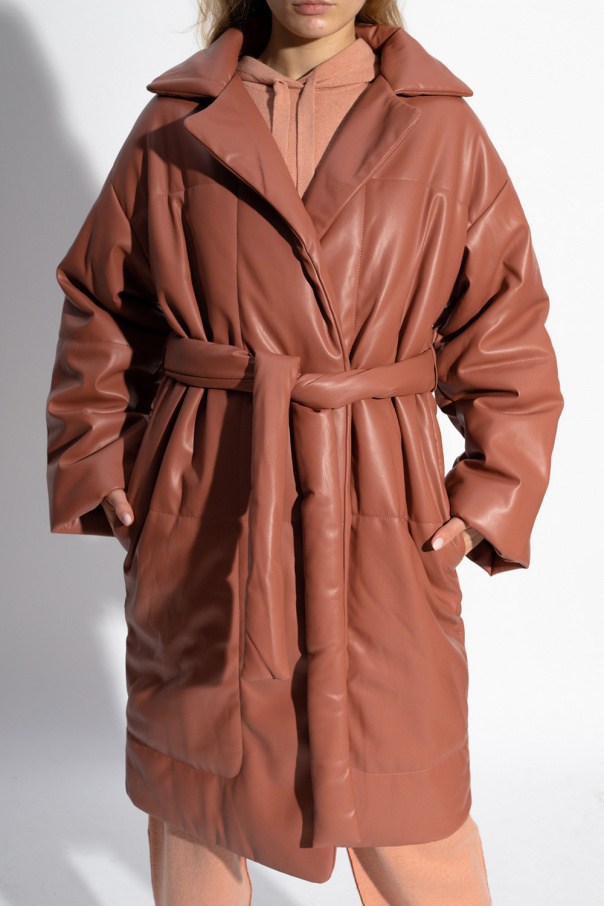 Pink quilted coat with a belt from Proenza Schouler. Crafted from faux leather, this oversize garment features snap fastenings, two front pockets and long sleeves.