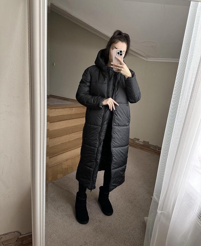 Куртка длинная черная зимняя с двумя замками
