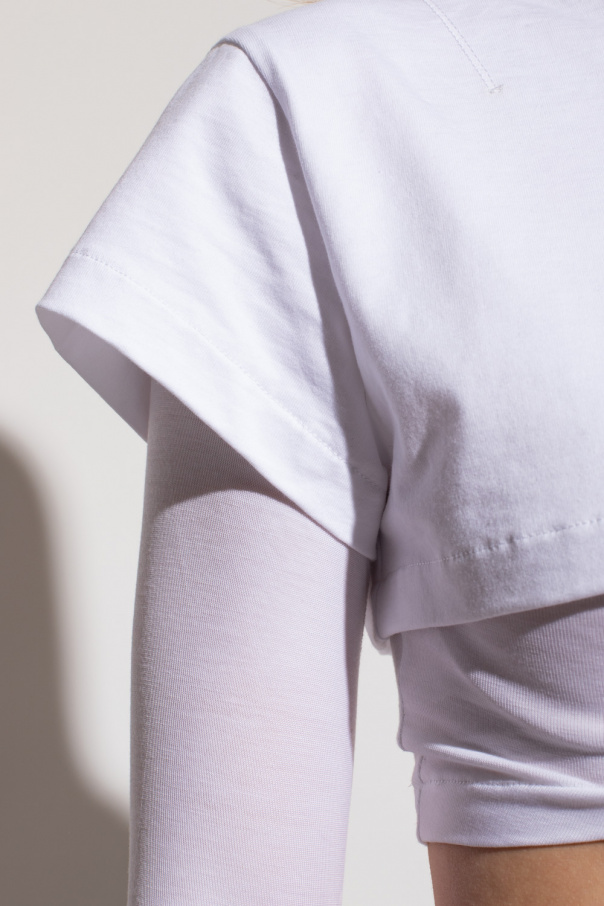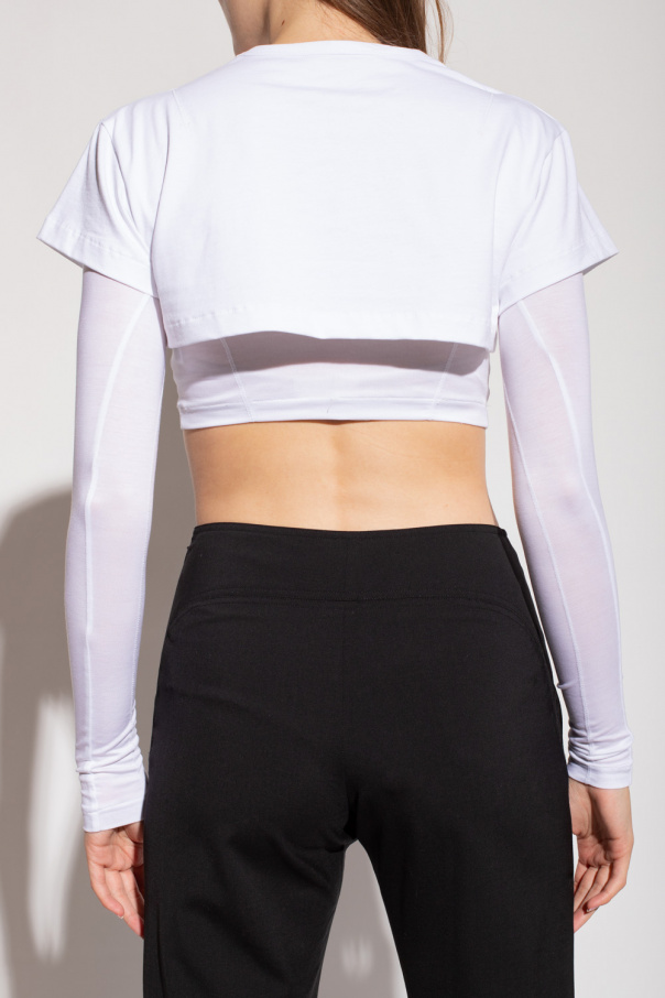 White crop top with ribbed crew neck from Jacquemus. Made of cotton.