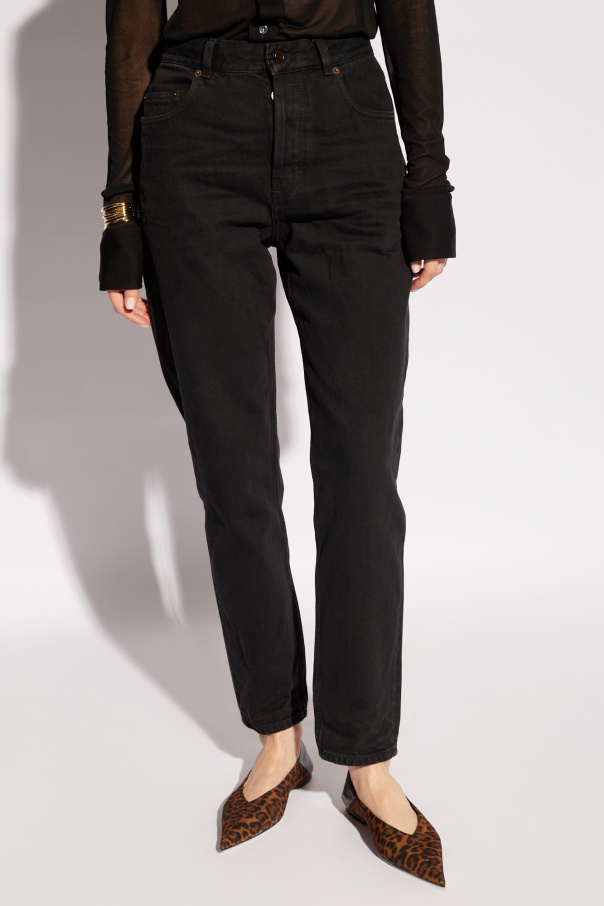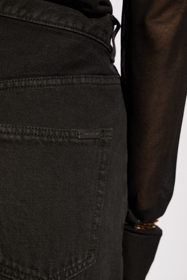 Introducing the epitome of contemporary chic - the High-Waisted Boyfriend Jeans by the illustrious Saint Laurent. Crafted from premium, heavyweight cotton, these jeans redefine relaxed sophistication. The dominant black hue and loose, masculine cut pay homage to the boyfriend style, while the high waist accentuates the silhouette, offering a flattering fit for every figure. The jeans boast a classic five-pocket design, with two front pockets, a small inset pocket on the right front, and two rear pockets, ensuring practicality without compromising style. The construction is highlighted by contrasting, lighter stitching, which accentuates the shape and structure of the pants, adding a touch of understated elegance. The closure is ingeniously designed with a zipper and button, though subtly integrated to maintain the sleek profile of these jeans. Adorned with a barely-there brand tag at the back, the attention to detail in these jeans is impeccable, making them a true testament to Saint Laurent\'s commitment to luxury and quality. Why Purchase These Jeans? Iconic Design: A modern twist on the boyfriend cut, tailored by Saint Laurent. Supreme Quality: Constructed from durable, heavyweight cotton for enduring style. Versatile Styling: Perfectly pairs with everything from a sheer blouse to a casual tee, adaptable for any occasion. Flattering Fit: High-waisted silhouette elongates the legs and accentuates natural curves. Exquisite Details: Contrasting stitching and subtle branding denote sophistication and luxury.