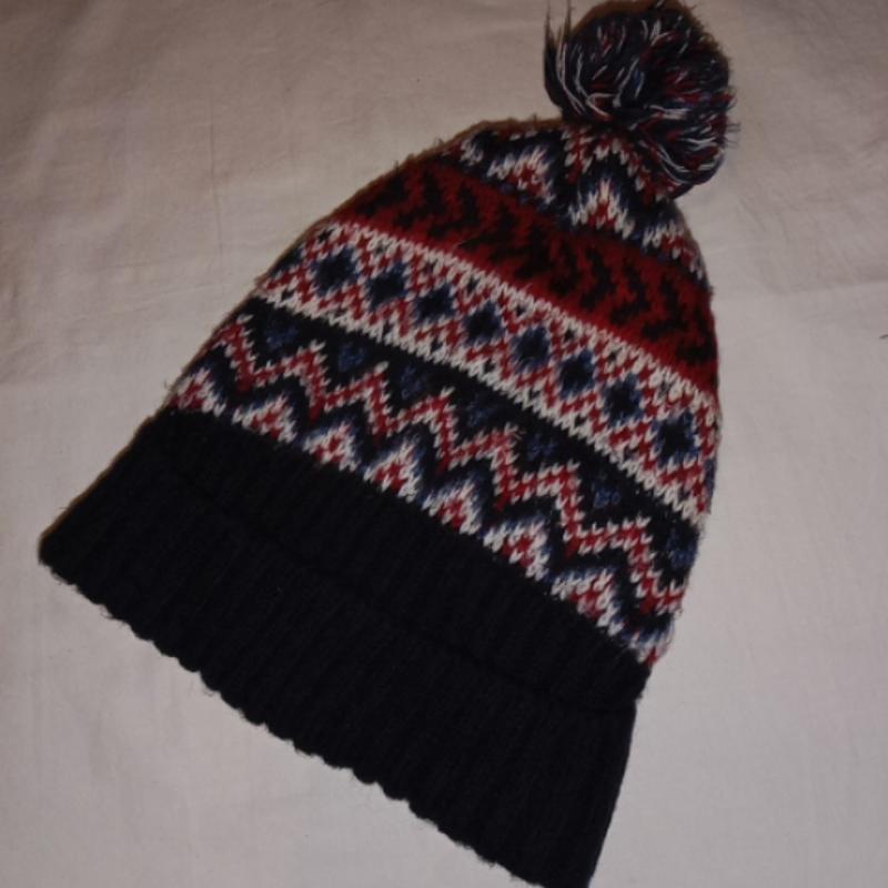 Синяя мягкая спортивная шапочка с орнаментом бело- красно- синего цвета. На подкладке, есть помпончик.Состояние: Очень хорошееЦвет:- Красный
