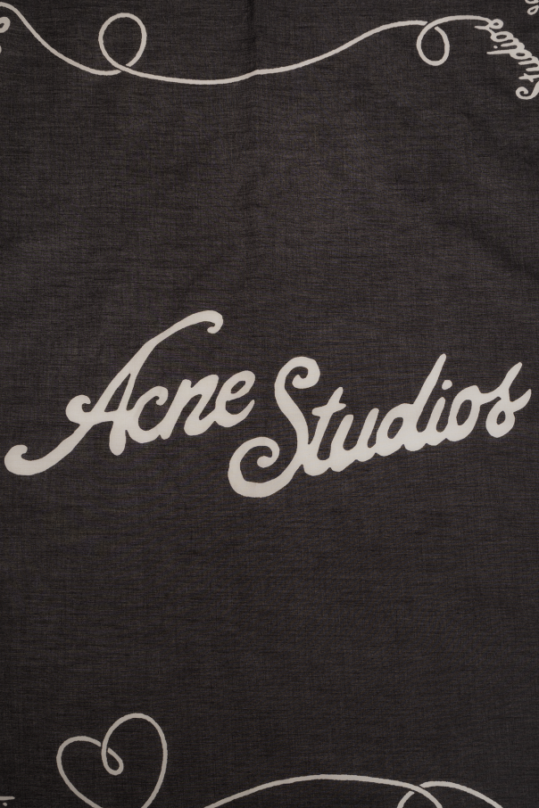 Black and white shawl from Acne Studios. Made of cotton, this item showcases a logo pattern accompanied by a floral motif.