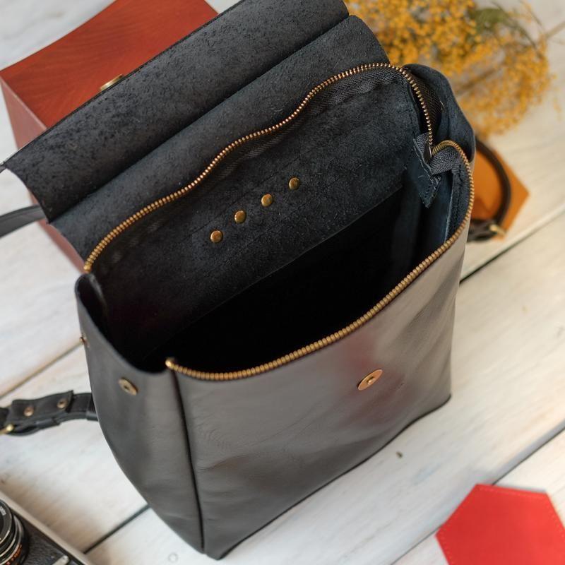 Рюкзачок выполнен из 100% кожи и без подкладок. Дизайн продуман до мелочей. Он вместителен, функционален и лишен избытка деталей.