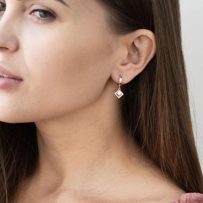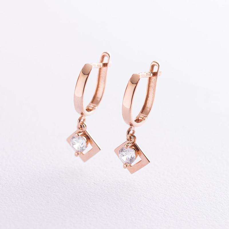 Золотые серьги "Ромбики" с фианитами Металл: красное золото 585" Вставка: