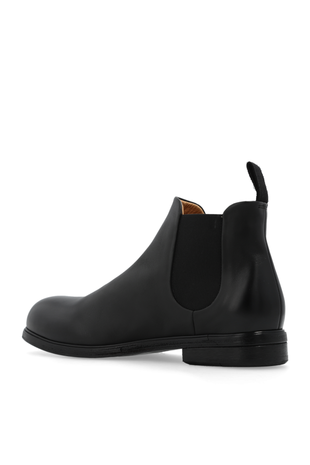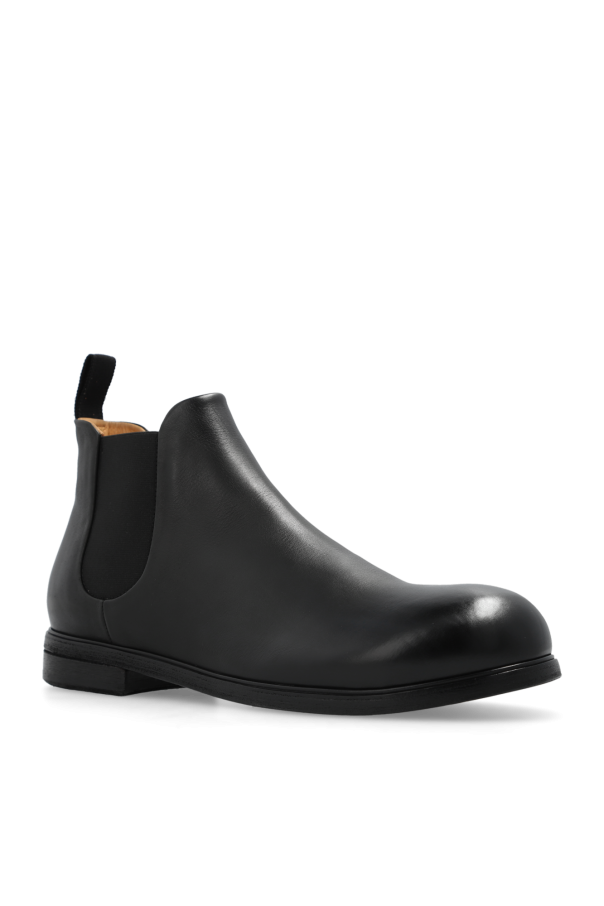 Black ‘Zucca Media’ Chelsea boots from Marsell. Made of leather, this model sits on a black sole in leather and rubber and features elastic panels on the sides.
