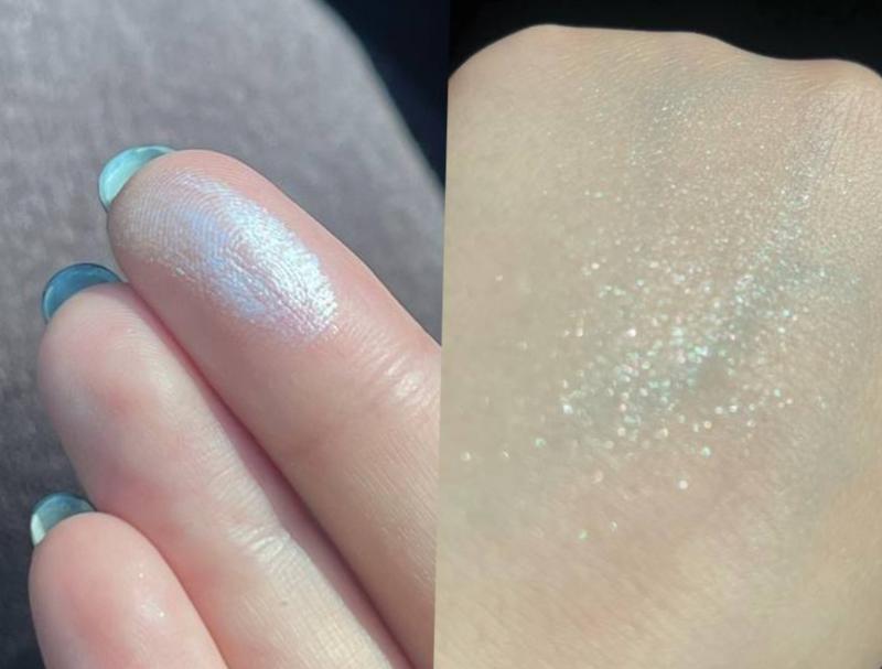 Это дуде классный продукт, который дает влажное сияние, а еще и отдельные блестки. сравнивают с продуктом от Рианы даймонд бомб