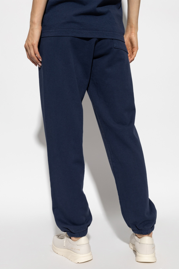 Introducing the epitome of sophisticated casual wear: the Sporty & Rich Navy Sweatpants. These unisex sweatpants, part of an exclusive collection, embody the perfect blend of comfort, style, and elegance. Crafted from 100% cotton, they offer an exceptionally soft and breathable feel, making them ideal for everyday wear, workouts, or leisurely activities. The dominant navy color exudes a timeless charm, while the elastic waistband with drawstrings ensures a snug and adjustable fit. Designed with a classic, relaxed cut, these sweatpants feature ribbed cuffs at the ankles for added comfort and a contemporary silhouette. The pants include two side pockets and one rear pocket, providing ample space for your essentials. The standout detail is the prominent \"USA ATHLETICS\" logo on the left leg, rendered in striking red and white hues, infusing a touch of sporty flair. Why Choose This Product? Unisex design suitable for both men and women Luxuriously soft and comfortable fabric Stylish and versatile navy color Elastic waistband and cuffs for a perfect fit Three practical pockets for convenience Distinctive \"USA ATHLETICS\" logo for a sporty touch Designed by the renowned brand Sporty & Rich