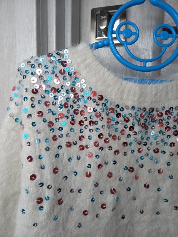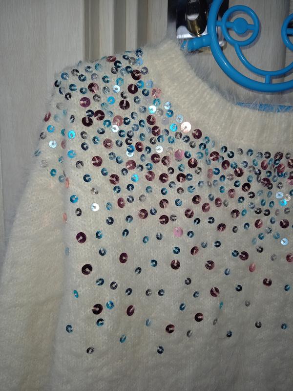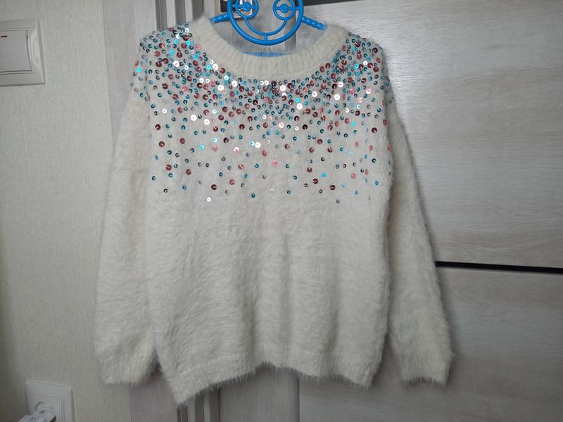 Нарядный теплый пушистый новогодний рождественский на Новый год свитер свитшот кофта травка молочная с пайетками Primark для девочки 6-7 лет ростом 122