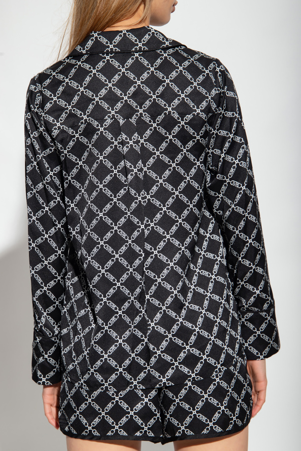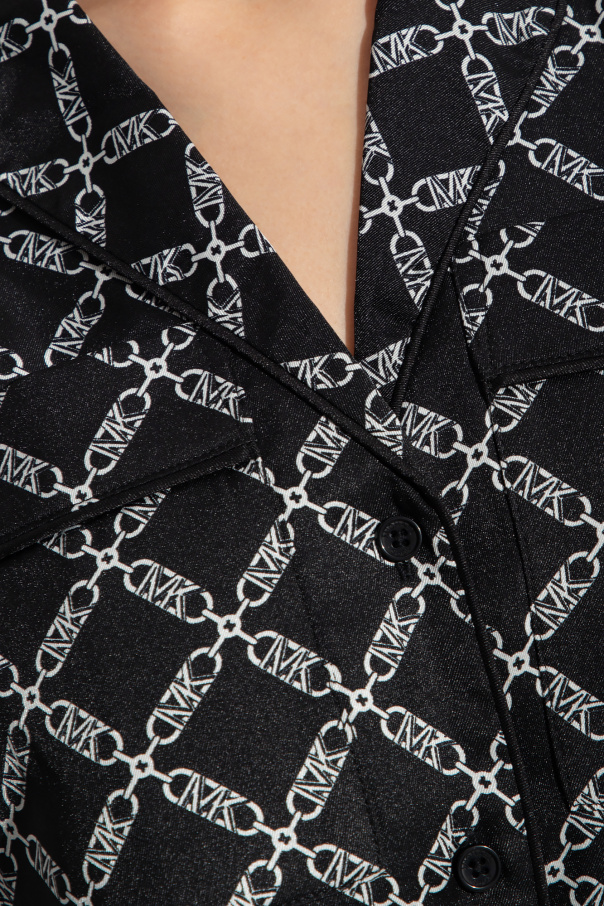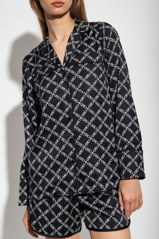 Black shirt with a satin finish from Michael Michael Kors. Fastened with buttons, this garment features a white logo pattern, two slip pockets and long sleeves with buttoned cuffs.