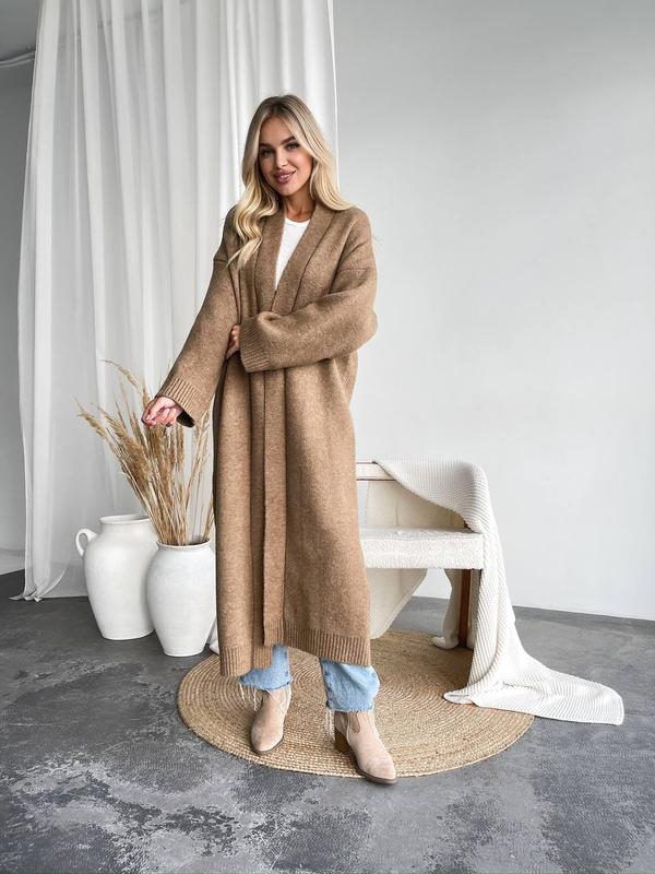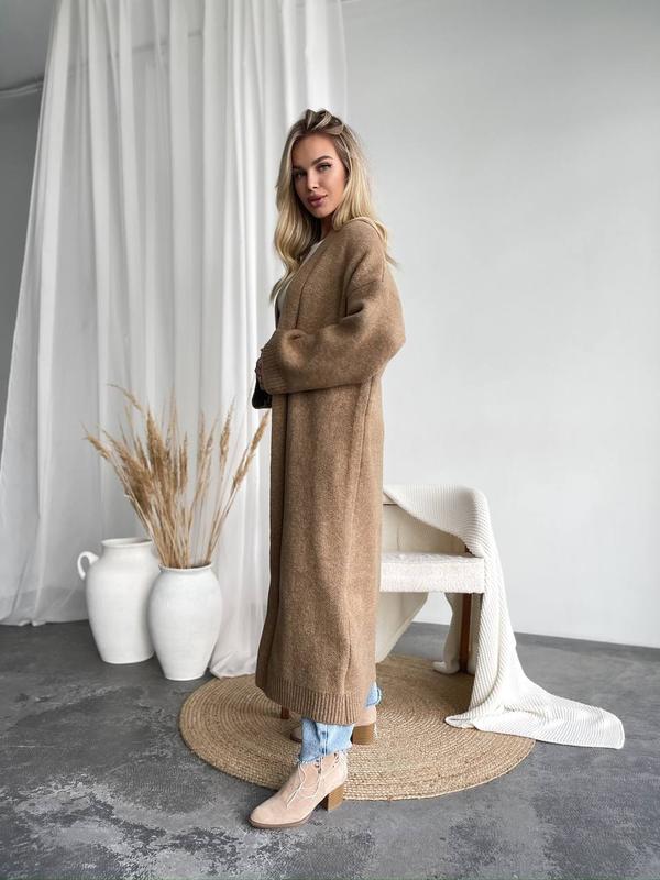 Подовжений кардиган, виконаний з м'якої пухнастої пряжі. Кардіган ідеально підійде на прохолодну погоду.