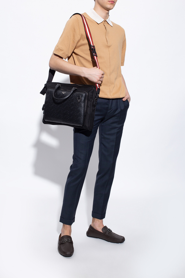 Brown ‘Parsal’ moccasins from Bally. Crafted from calf leather, this pair features a B monogram pattern, metal applique in dark silver-tone and black rubber sole.