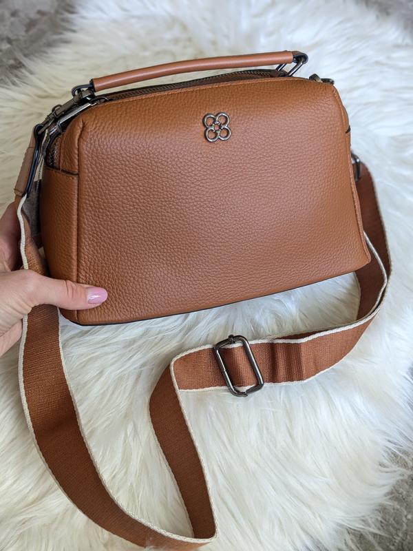 В комплекте есть 2 ручки-длинная регулируемая из экокожи и текстильная широкая.