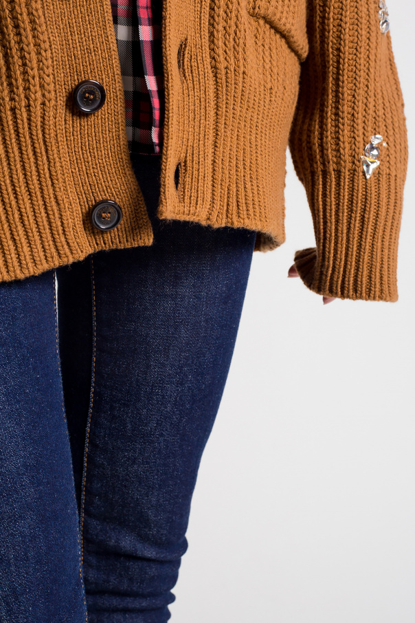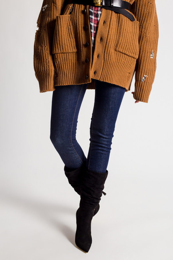 Navy blue ‘Jennifer Cropped’ jeans from Dsquared2. Crafted from stretch-cotton denim with a low waist, this pair features button fastenings, classic five pockets and tapered legs.