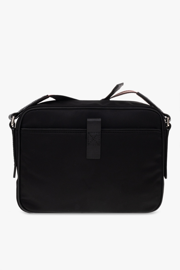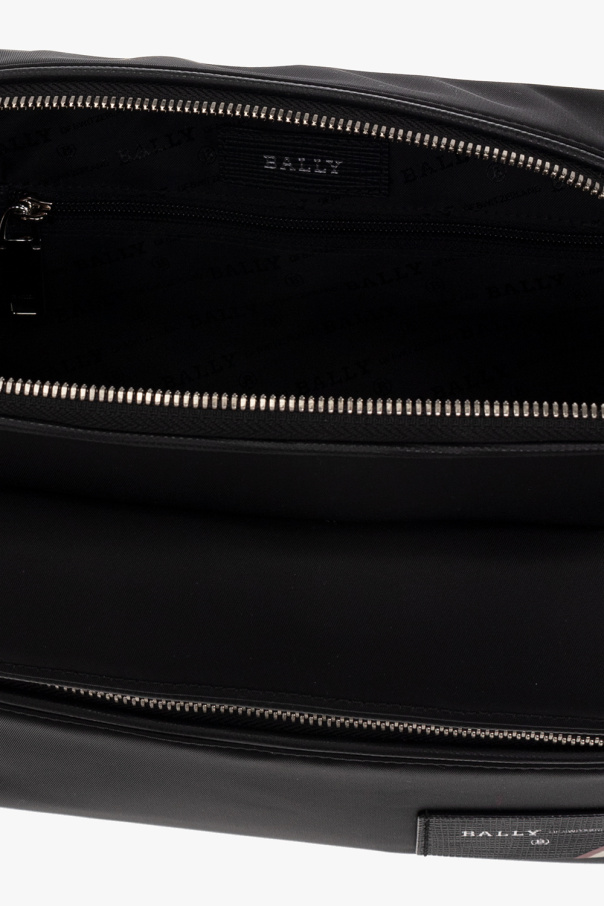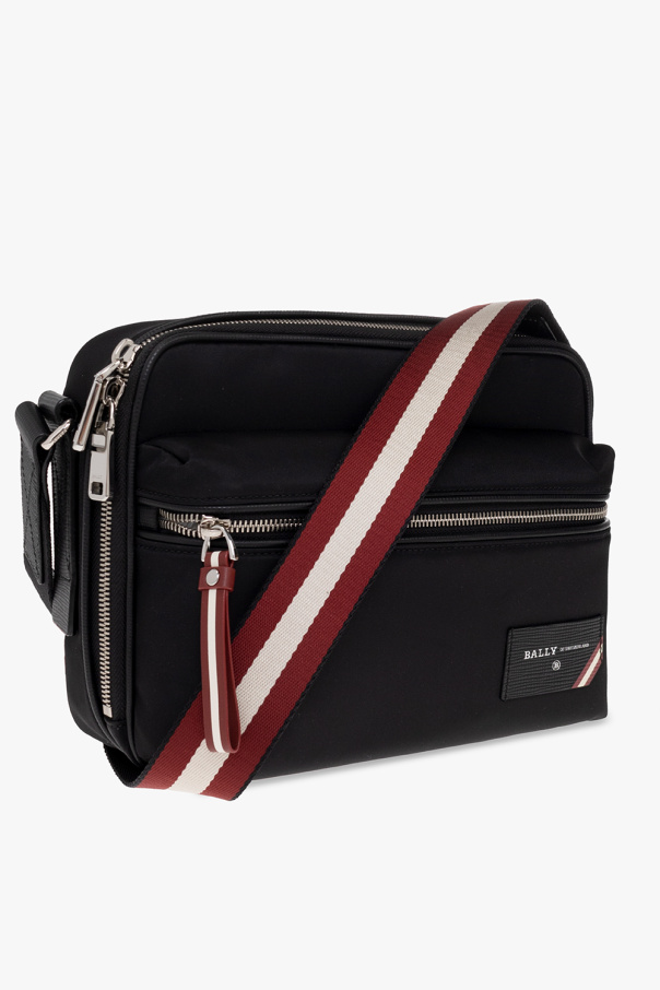 Black ‘Fiji’ shoulder bag from Bally. Emblazoned with a logo patch on the front, this design fastens with a two-way zipper and features a back pocket with a magnetic closure, an adjustable shoulder strap with the brand\'s signature red and white stripe motif, silver-tone metal hardware and one internal compartment with two slip pockets and one zip pocket.