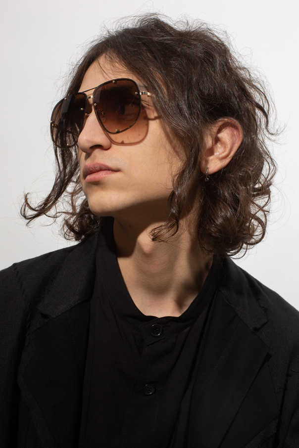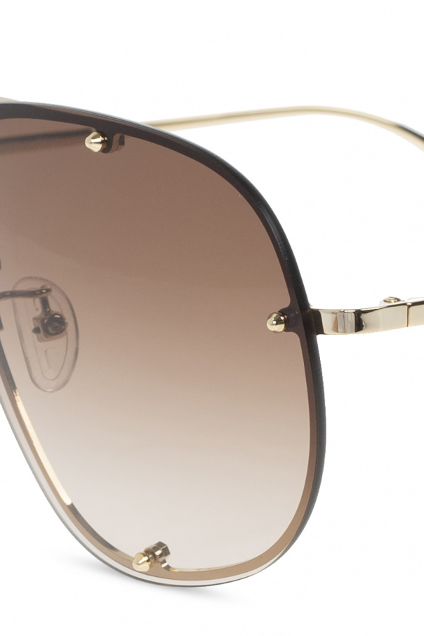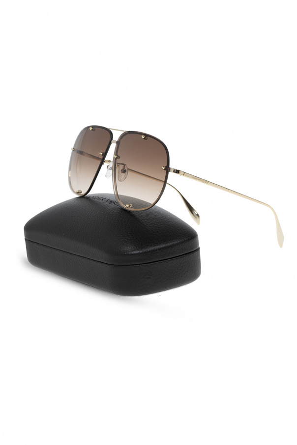 Gold-tone sunglasses from Alexander McQueen. Made in metal, this pair features a double-bridge design, an engraved logo on the temples and certified gradient brown lenses with protection against detrimental UVA/UVB rays. Black case with an embossed logo included.