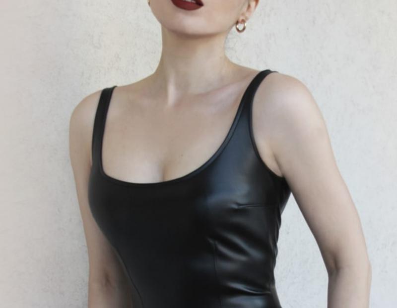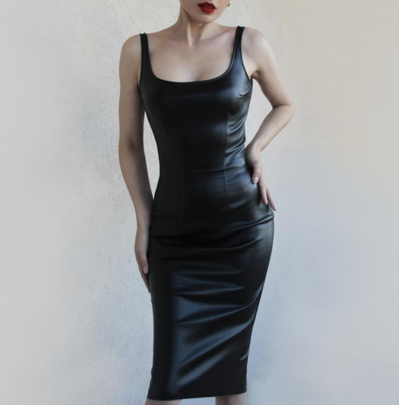 Платье-футляр по фигуре из итальянской эко-кожи на бретелях идеально послужит Вам вечерним нарядом с яркими губками и красивыми украшениями. Или как повседневный вариант под пиджак или кардиган. Или как основа под укорочённый свитер. В общем - масса вариантов!