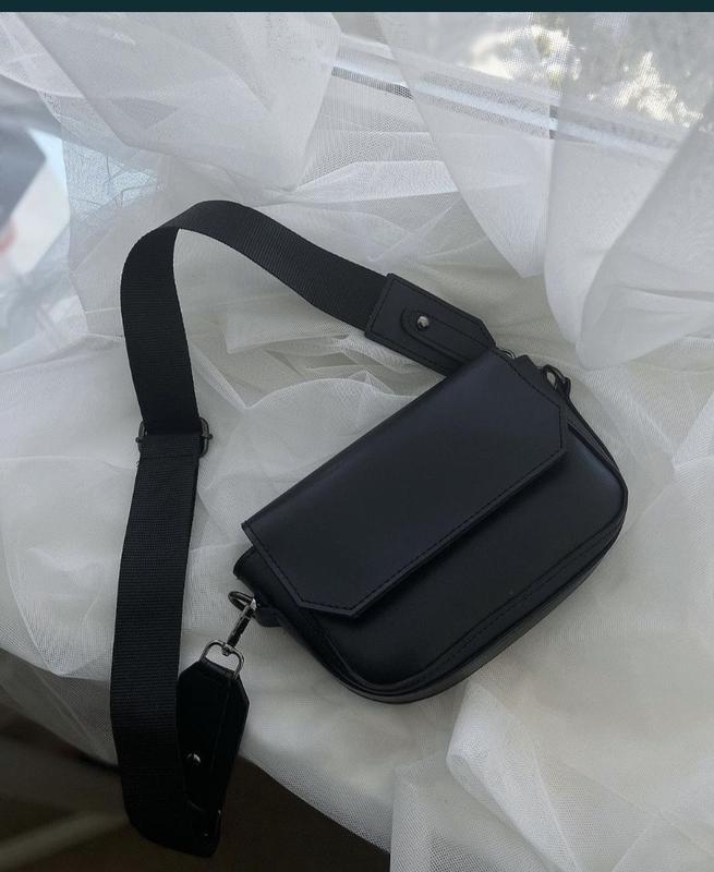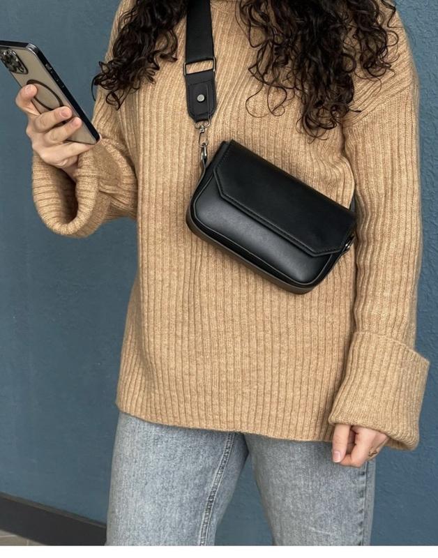 Женская сумочка через плечо на удлиненном ремне регулируется.