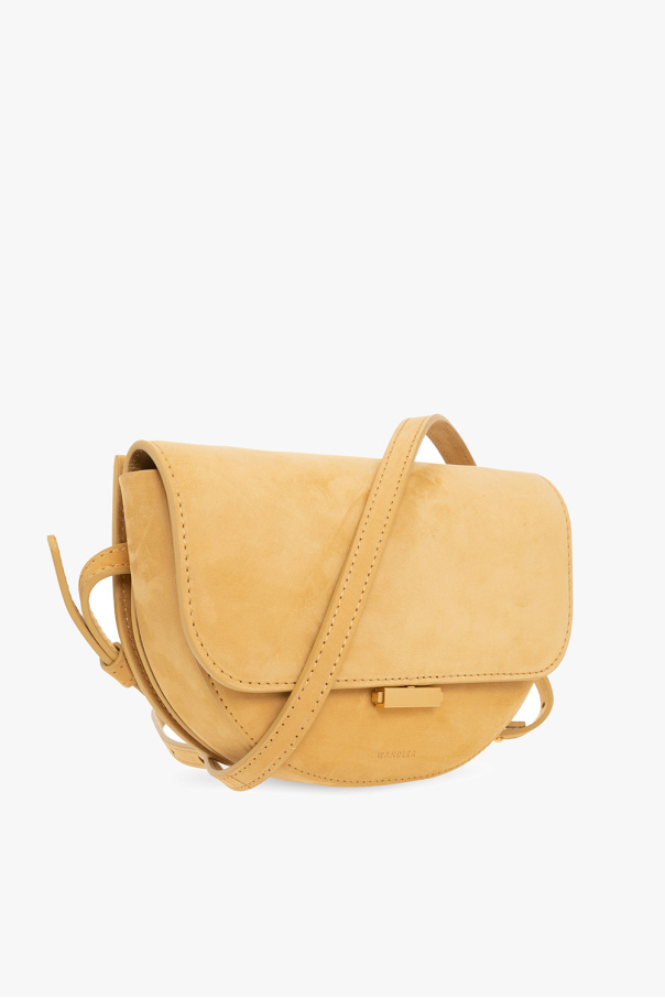 Yellow ‘Anna’ belt bag from Wandler. Crafted from nubuck, this design fastens with a snap and showcases an embossed logo on the front, a back zip pocket, an adjustable strap, gold-tone metal hardware and one internal compartment with a card slot. Can be worn as a shoulder bag.