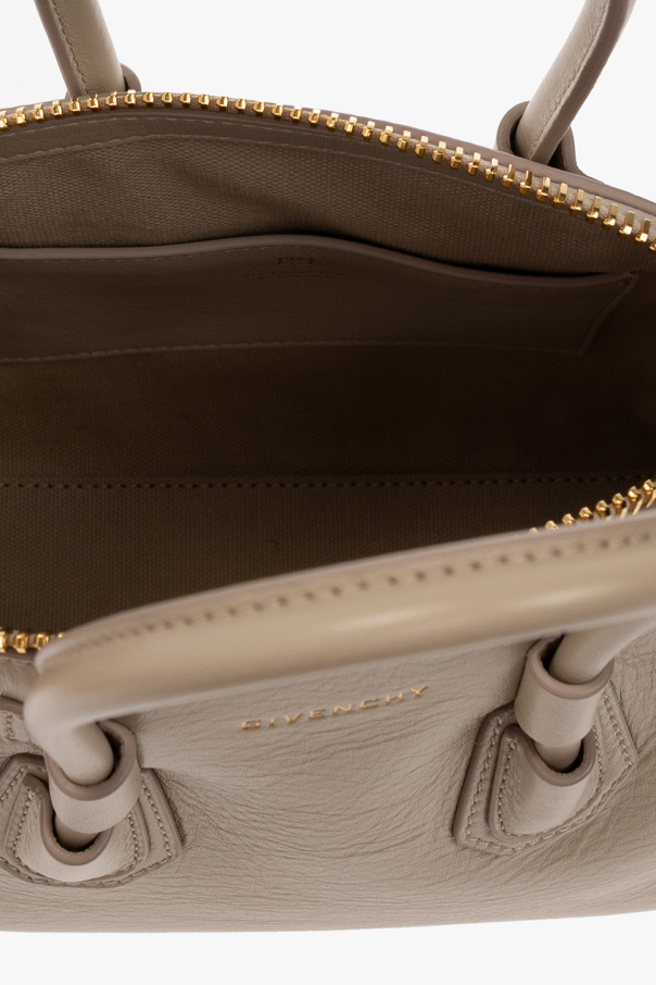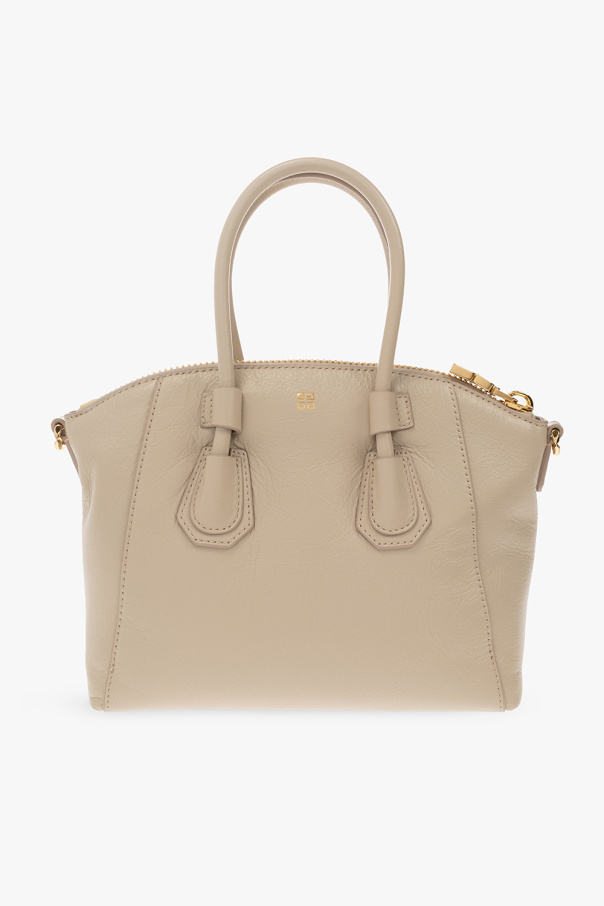 Light beige ‘Antigona Sport Mini’ shoulder bag from Givenchy. Made of calf leather, this design features a zip fastening, embossed logo in gold-tone, two half-round handles, detachable and adjustable strap, gold-tone metal hardware and one internal compartment with one slip pocket.