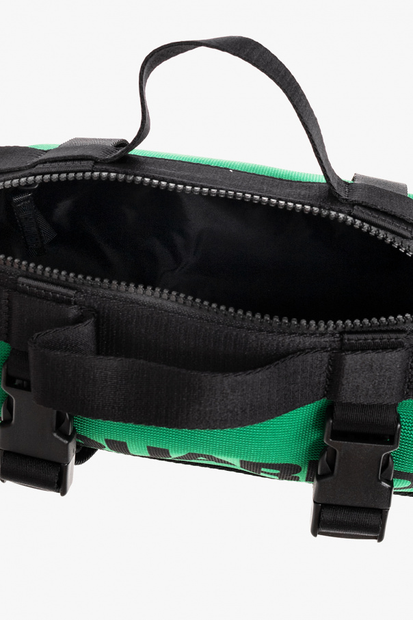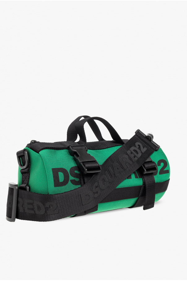 Green and black shoulder bag from Dsquared2. Fastened with a two-way zip, this model features a black logo print, decorative snaps, two half-round handles, detachable and adjustable shoulder strap as well as one internal compartment with one zip pocket.