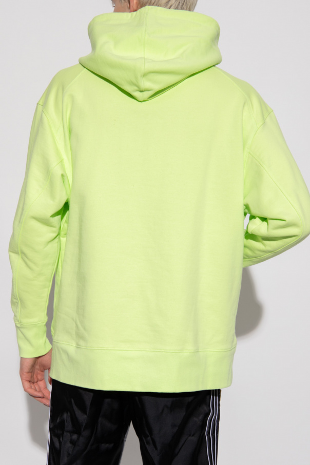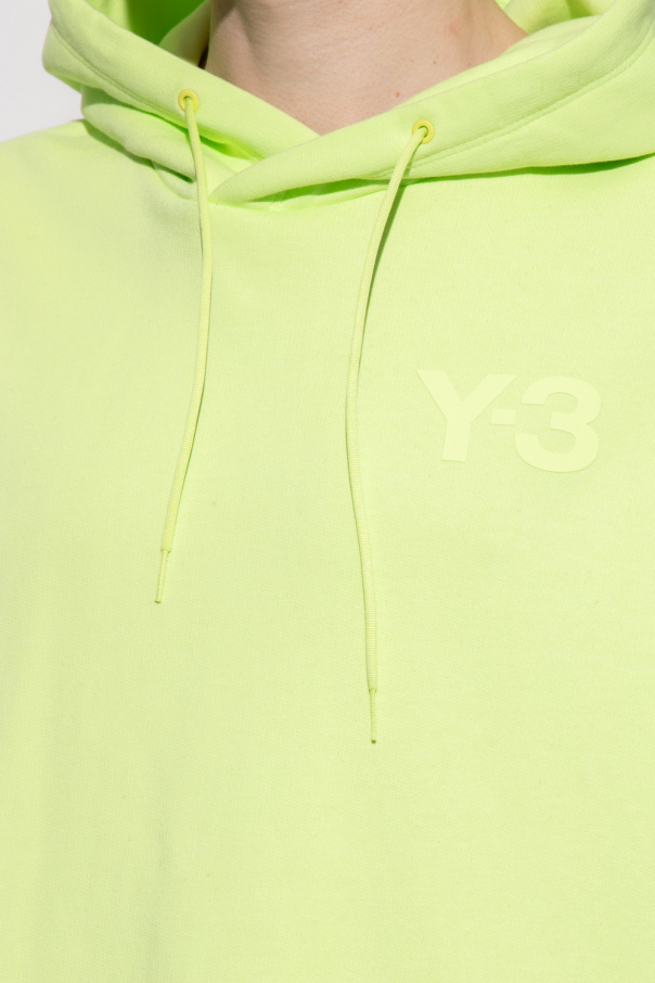 Neon green hoodie from Y-3 Yohji Yamamoto. Made of cotton, this garment features a drawstring hood, front pocket, logo print and ribbed trims at the hem and cuffs.
