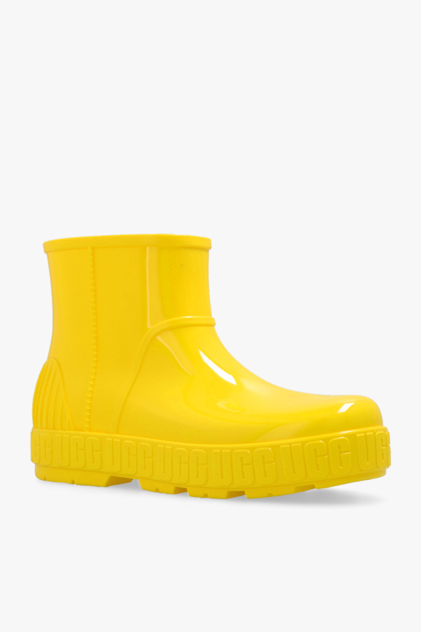 Yellow ‘Drizlita’ rain boots from UGG. Made of recycled rubber, this pair features a sheep wool insole and rubber sole with a raised logo.