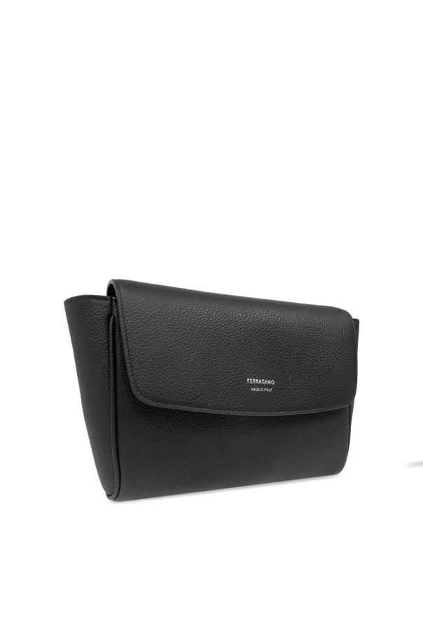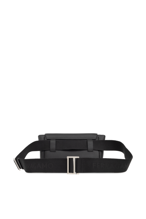 Introducing the \'Florence\' men\'s belt bag, a quintessential piece by FERRAGAMO that marries functionality with unparalleled elegance. Crafted from premium quality leather, or a leather-like material, this accessory boasts a smooth, uniform texture that exudes sophistication. Its rectangular, horizontal silhouette with rounded corners defines modern minimalism, making it a versatile addition to any attire. The bag\'s singular black hue enhances its sleek design, ensuring it complements a diverse range of styles. Notably, the front panel features a subtle inscription or logo, signifying the distinguished FERRAGAMO brand. For convenience and security, the bag comes equipped with a flap likely featuring a magnetic closure, alongside a zippered mechanism, providing easy yet secure access to your essentials. Inside, it reveals a main compartment and a slip pocket, thoughtfully designed to organize your belongings. Why Purchase This Product? Elegant Design: Its minimalist aesthetic is both stylish and practical, making it a perfect accessory for the modern man. Quality Materials: Made with 90% leather and 10% cotton, offering durability and a luxurious feel. Brand Prestige: Bearing the FERRAGAMO name, it\'s a testament to designer craftsmanship and style. Functional Details: Features a magnetic and zip closure, a main compartment, and a slip pocket for efficient organization.