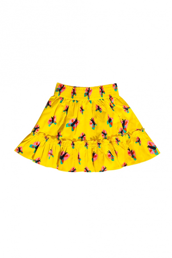 Yellow skirt from Stella McCartney Kids. Embellished with a colourful pattern and gathers, this cotton-crafted item is complete with an elasticated waistband.