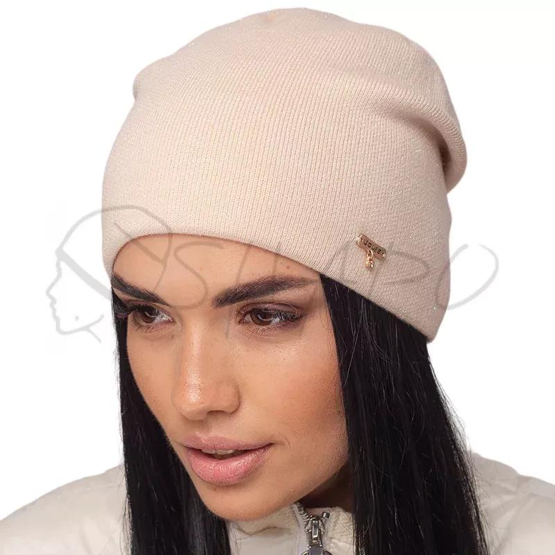 Шапка женская шерстяная утепленная флисовой подкладкой сцепленная сзади-