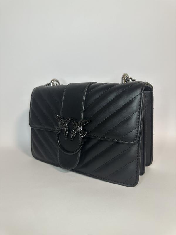 Модная женская сумочка клатч Пинко стеганная, мини сумка в стиле Pinko черная Характеристики: Материал: экокожа премиум качества; Хорошо держит форму; Длина: 24 см; Ширина по основанию: 8,5 см; Высота: 16 см; Ремешок: цепочка+вставка из экокожи (максимальная длина 140 см); Качественная металлическая фурнитура.