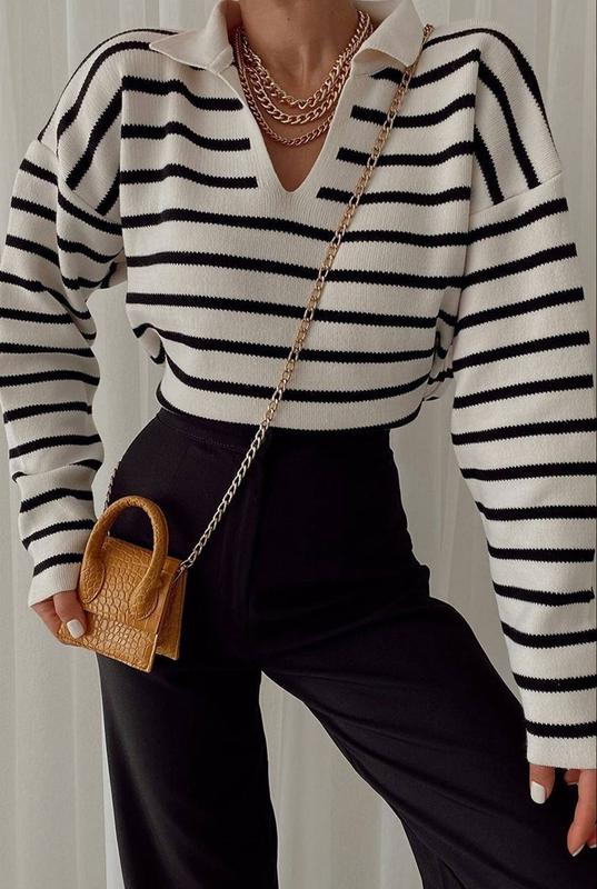 Женский свитер «Поло» оверсайз в полоску. Стильная и любимая модель. Отличное качество💯