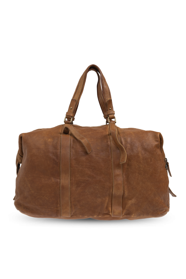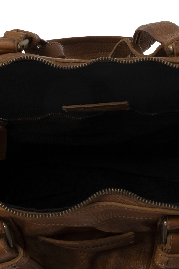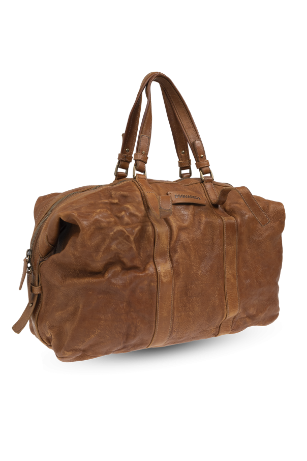Introducing the exquisite Handheld Bag with Logo from Dsquared2, a paragon of timeless elegance. This luxurious accessory, crafted from the finest calf leather, boasts a sophisticated brown hue that is both classic and versatile. The bag\'s rectangular silhouette with subtly rounded edges is a testament to its impeccable design, featuring two sturdy handles for effortless hand-carrying. The exterior is adorned with the iconic \"DSQUARED2\" logo on a leather patch, complemented by harmoniously matched metal accents. Functionality meets style with its zippered closure that grants easy access to the bag\'s refined interior, which includes one main compartment and three pockets—two slip pockets and one zippered—ensuring practicality for your essentials. Ideal as a carry-on or a chic addition to your daily ensemble, this bag epitomizes the luxury travel accessory. Dsquared2, founded by visionary brothers Dan and Dean Caten, marries American glamour with Italian sophistication, offering an alternative luxury that seamlessly blends artistry with casual elegance. Why Choose This Product? Crafted from premium calf leather for unmatched quality. Features a signature Dsquared2 logo for a touch of distinction. Offers practical storage with its spacious interior and multiple pockets. Embodies the perfect blend of luxury and functionality.
