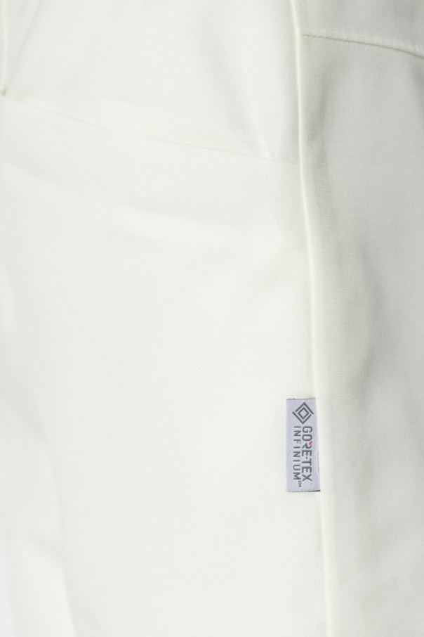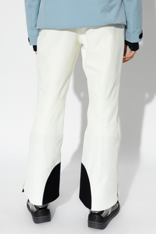 Cream and black ski trousers from Moncler Grenoble, the ‘Moncler Grenoble High Performance’ collection. Crafted from water-repellent and windproof Gore-Tex material, this pair falls with slightly flared legs and features a zip fly with a snap, two front zip pockets and zipped cuffs.