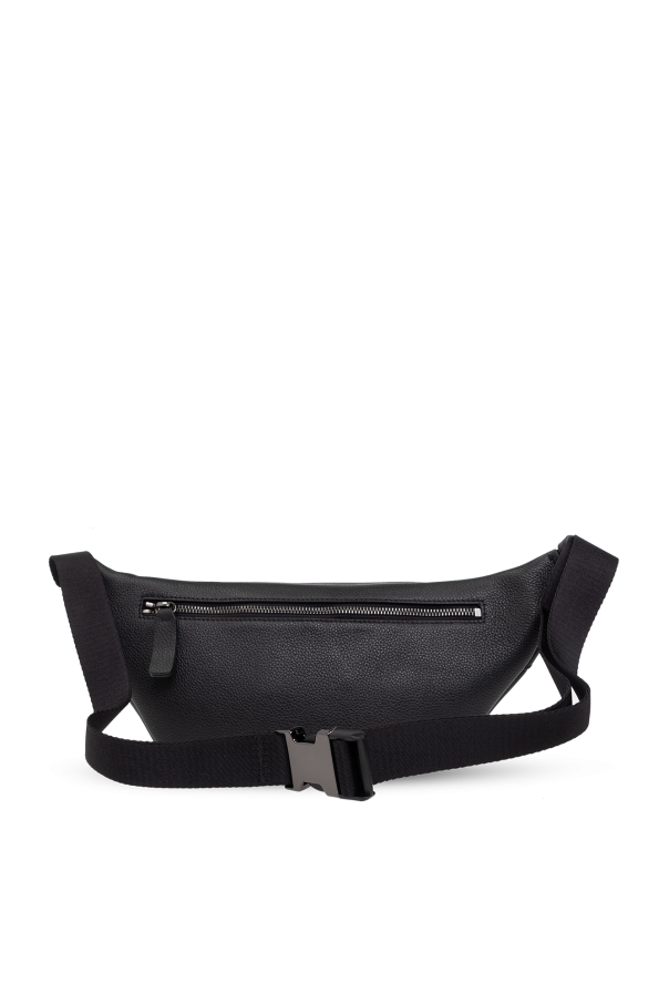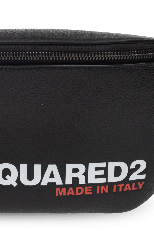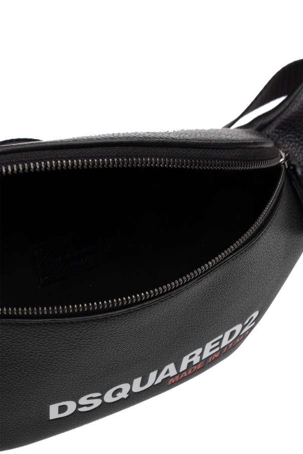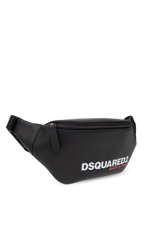 Black belt bag from Dsquared2. Made of leather, this model features a zip fastening, printed white and red logo on the front, zip pocket at the back, adjustable belt and one internal compartment with one slip pocket.
