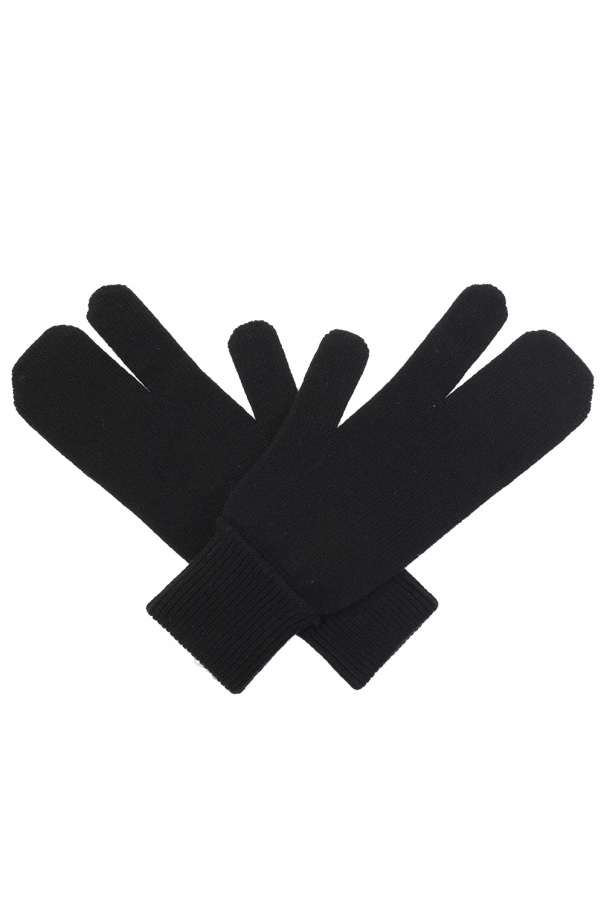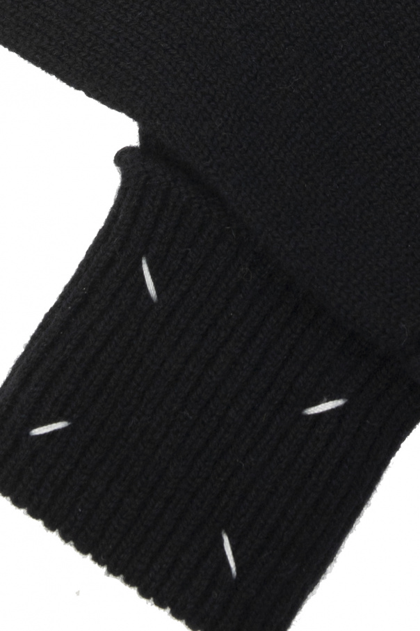 Black gloves from Maison Margiela. Crafted from a wool and cashmere blend, this pair features an elastic edge and white embroidery with the brand's logo.