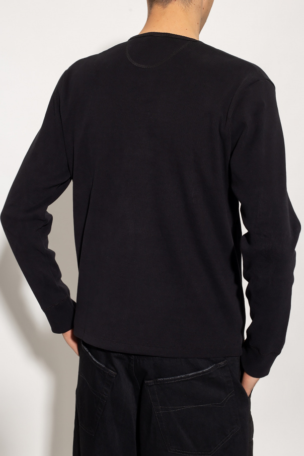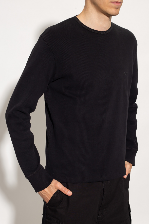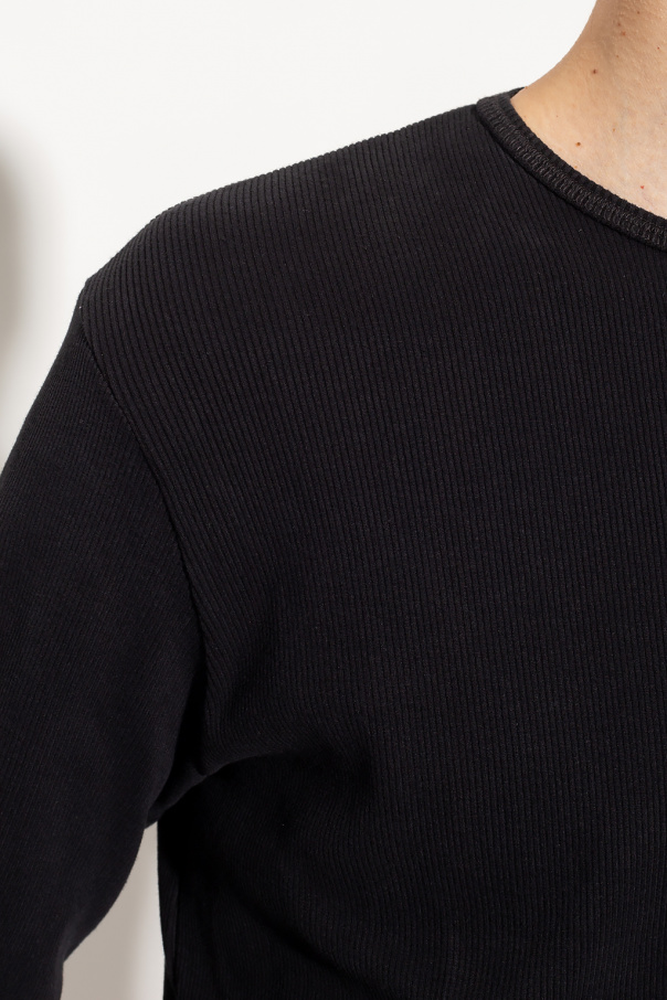 Black crewneck T-shirt from Balenciaga, the ‘Underwear’ collection. Crafted from stretchy cotton with a ribbed texture, this style features long sleeves and BB Icon logo embroidery on the front.