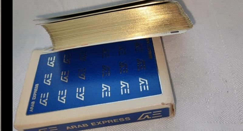 Карты игральные arab express,с золотым винтаж. 54 штук. Коробка упаковочная не новая, есть потёртости и следы клея от ценника.