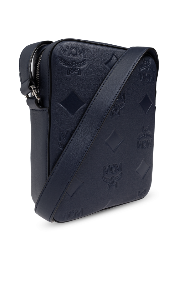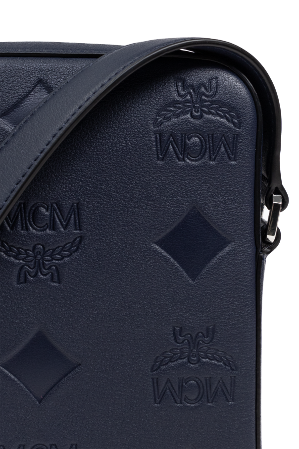 Introducing the Exquisite Navy Leather Shoulder Bag, a masterpiece brought to you by the renowned German brand, MCM. Crafted from premium leather, this bag exudes an air of sophistication and durability that is simply unparalleled. The bag\'s surface is adorned with a beautifully embossed MCM logo, complemented by a signature diamond pattern, accentuating its luxurious essence. Its rectangular silhouette, softened by rounded corners, offers an ergonomic design enhanced by an adjustable shoulder strap for utmost comfort. Secured with a robust zipper, this bag ensures the safety of your essentials. Inside, it boasts a main compartment, a slip pocket, and a zip pocket, while a magnetic pocket graces the back. This versatile accessory is perfect for daily outings or carrying your essentials with style. Why Choose This Product? Crafted from the finest quality leather for an elegant and durable look. Features an iconic embossed logo and diamond pattern for a touch of luxury. Enhanced functionality with multiple interior pockets and a secure zipper closure. Adjustable strap for personalized comfort and fit. Designed by MCM, a brand synonymous with quality and avant-garde style.