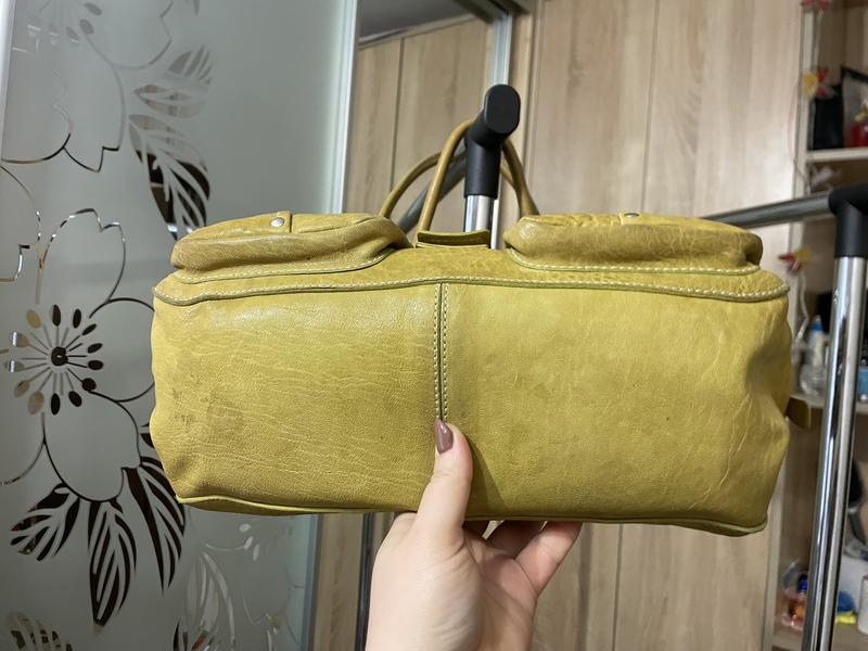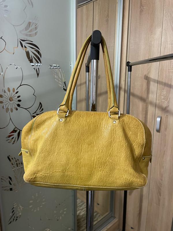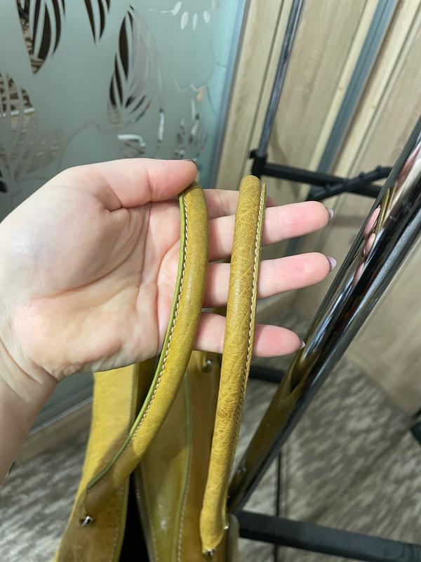 Цвет горчичный. Отменного качества, мягкая кожа.
