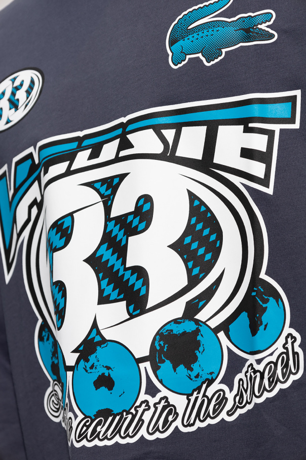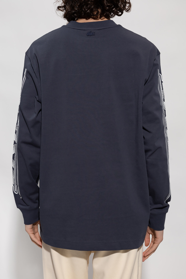 Navy crewneck T-shirt from Lacoste. Made of cotton, this garment features a logo print and long sleeves with ribbed cuffs.