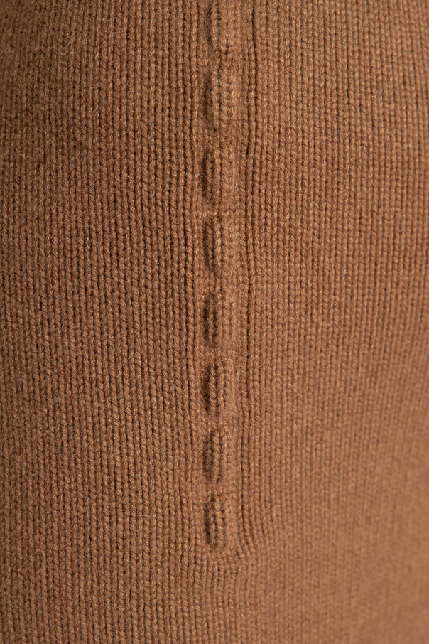 Light brown pencil skirt form Fendi. Made of cashmere, this high-waisted design is complete with an elastic waistband, side zip and ribbed trims.