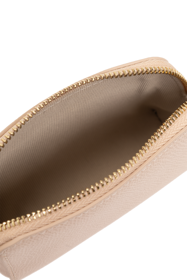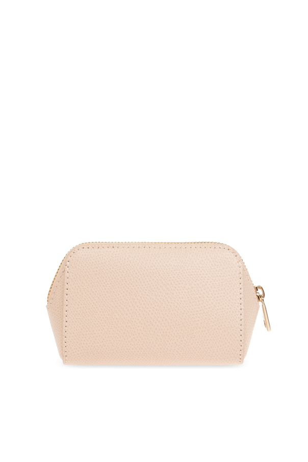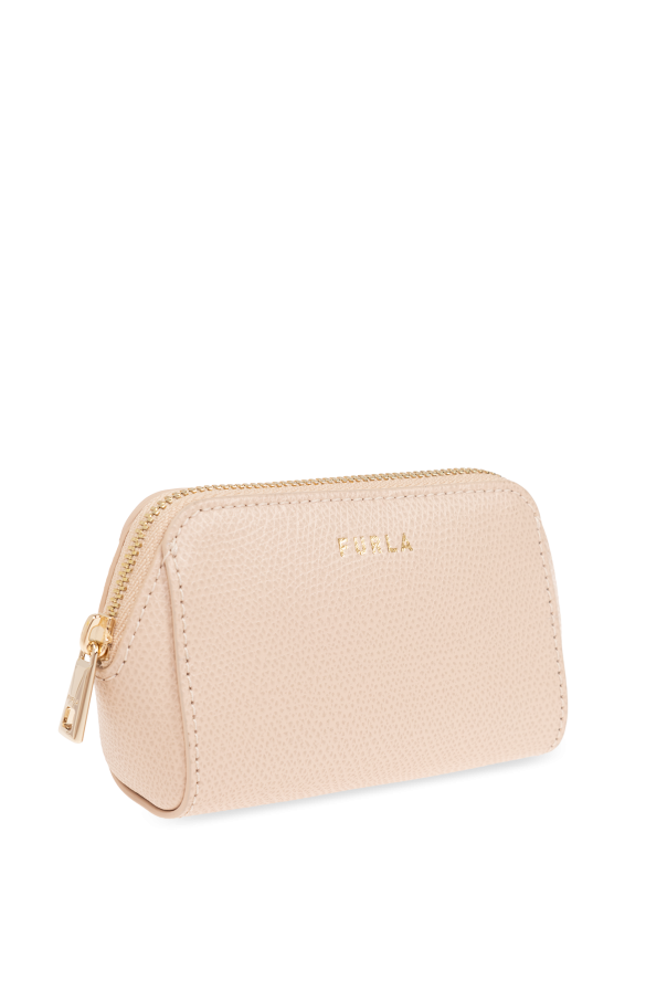 Set of 2 ‘Camelia’ wash bags from Furla. Made of leather, each item features a zip fastening and gold-tone logo. One is light pink with one slip pocket with one slip pocket. The other is beige with one internal compartment.