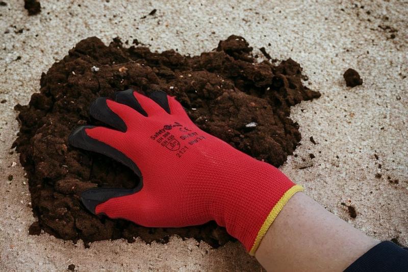 Перчатки "Стрейч пена" красные нейлоновые трикотажные. Неполный облив