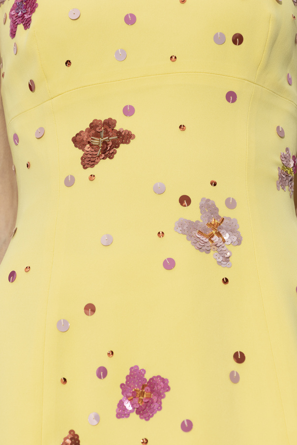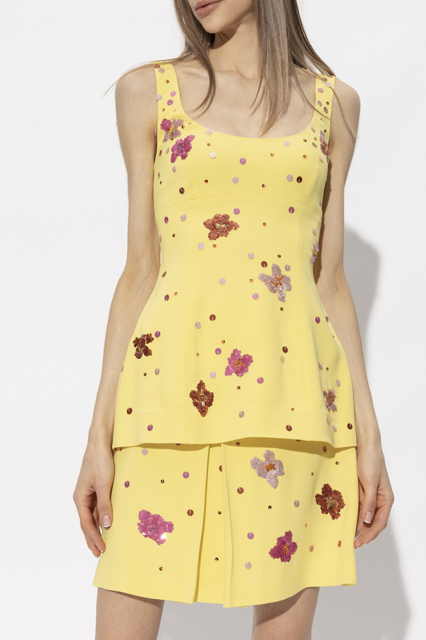 Yellow tank top from Marni. Emblazoned with sequinned appliqués with a floral motif, this style features a side zipper with a hook & eye closure.
