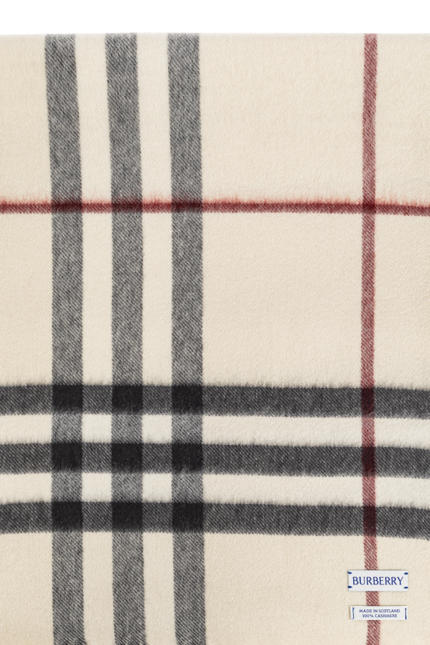 Introducing the Cashmere Scarf by the renowned fashion house Burberry, a testament to timeless elegance and luxurious comfort. Crafted from the finest 100% cashmere, this exquisite accessory features a classic tartan pattern in a sophisticated palette of cream, black, and red. The scarf\'s sumptuous texture ensures a soft embrace, elevating any ensemble with its unparalleled quality. Adorned with the iconic Burberry logo tag on one corner, this scarf exudes authenticity and prestige. The elegant fringed ends add a touch of refinement, making it a versatile unisex piece that seamlessly complements both formal and casual attire. The Burberry legacy, established in 1856, is embodied in this scarf, echoing the brand\'s rich heritage and commitment to excellence. Why Purchase This Product? Luxurious 100% cashmere material for ultimate softness and warmth. Timeless tartan design in a classic color palette. Versatile unisex accessory suitable for any occasion. Elegant fringed ends for a sophisticated finish. Embody the prestige of the Burberry brand.