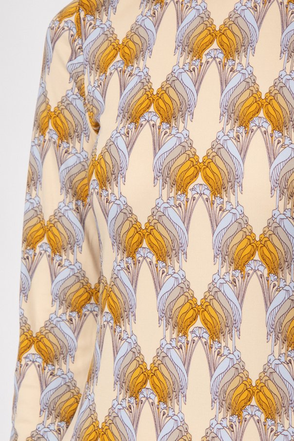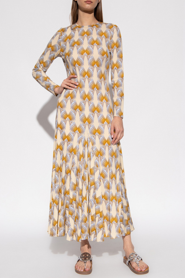Multicolored flared dress from Tory Burch. Fastened with a back zip and hook-and-eye, this long sleeve design has a round neck and is decorated with a pattern.