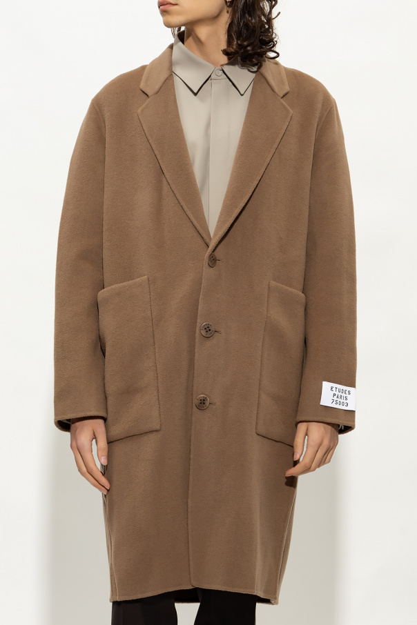 Brown coat from Etudes. Crafted from wool, this style features button fastenings, notch lapels, two slip pockets and a white and black logo patch on the sleeve.