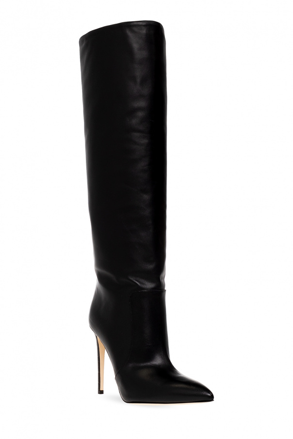 Black heeled boots from Paris Texas. Made of leather with a slip-on style, this model features a tapered toe, a cream leather sole and a high heel covered with croc-effect leather.