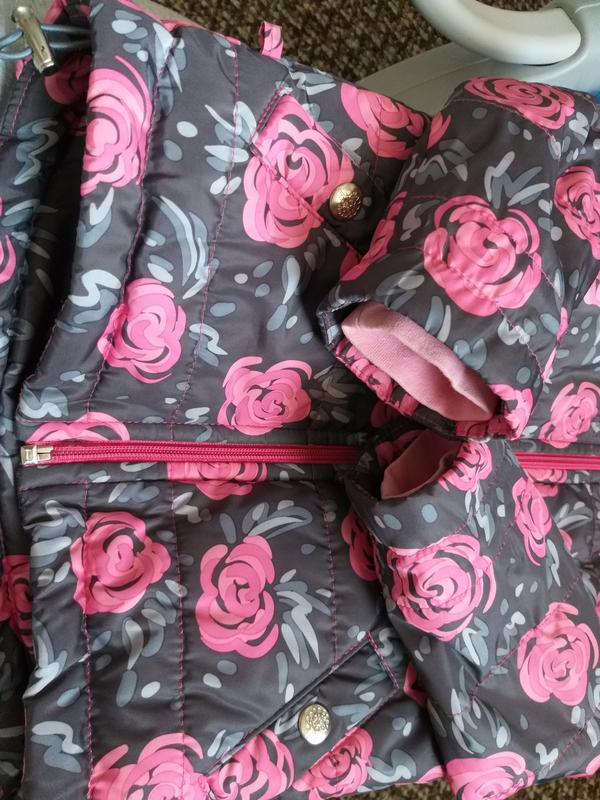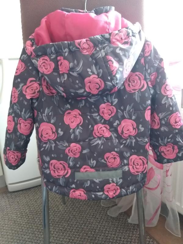 Куртка демісезонна, утеплена, тканина плащова. Легка, але тепла, тканина не пропускає холодне повітря і вітер, легко стирається і не мнеться. Утеплювач синтетичних волокон «PoliTex» щільністю 150г/м2 не дасть замерзнути ранньою весною і не створить парникового ефекту в більш теплу погоду, завдяки своїй легкості і пустотілої структурі матеріалу. Силует куртки прямій. Подовжена Спинка регулюється по ширині за допомогою гумки з фіксаторами, є світловідбиваюча смужка. Кишені похилі, застібаються на кнопки. Комір стійка, висока горловина. Рукава куртки з внутрішніми трикотажними манжетами. Застібка куртки з внутрішньої вітрозахисною планкою, її верхній край закриває бігунок від зіткнень з шкірою дитини. Капюшон съмный, можна застібати на гумку, для кращої фіксації на голові. Капюшон куртки досить просторий. Модний Бренд карапуз. Зростання вказаний 86, большемерит, носили до зростання 98. Що куртка не нова, видно тільки по внутрішнім трикотажним манжет рукавів, які зовні не видно. Напівобхват грудей 33 см, довжина спинки 42 см, довжина рукава від горловини 40 см, від плечового шва 32,5 див. глибокий Капюшон, 28 см висота.