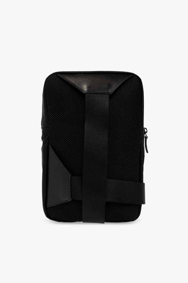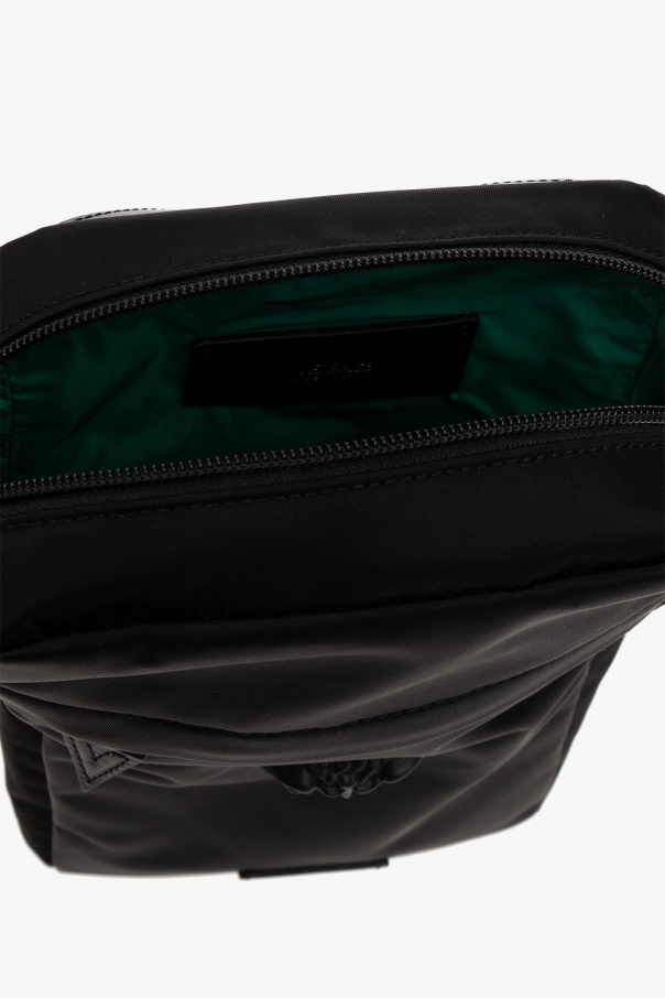 Black backpack from Versace. Fastened with a zip, this model features a Medusa head, front zip pocket, shoulder strap, one internal compartment and silver-tone metal hardware.